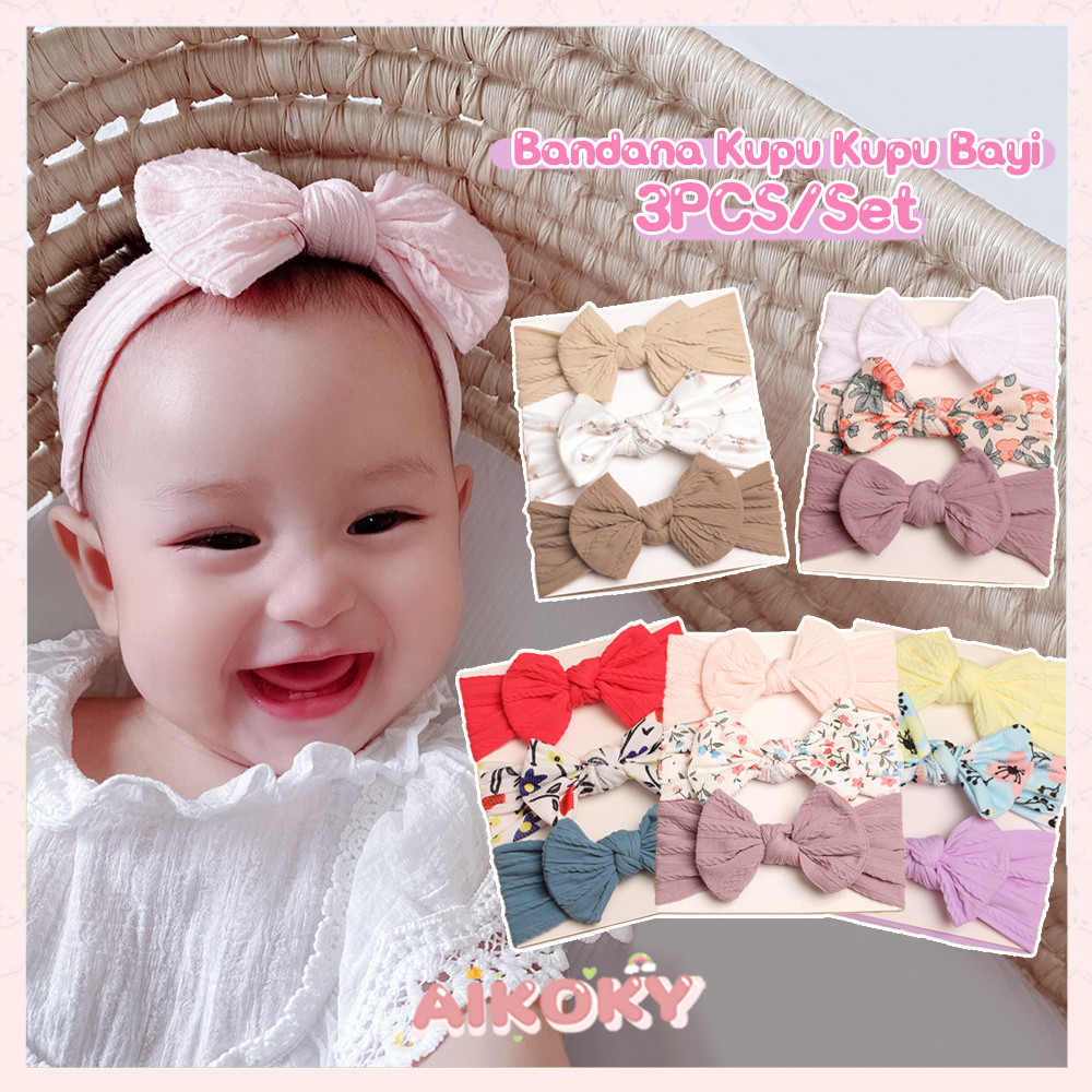 Bando Bayi AIKOKY Ban Pita Bayi Ikat Kepala Bayi Anak Perempuan Baby Headband 3PCS/Set
