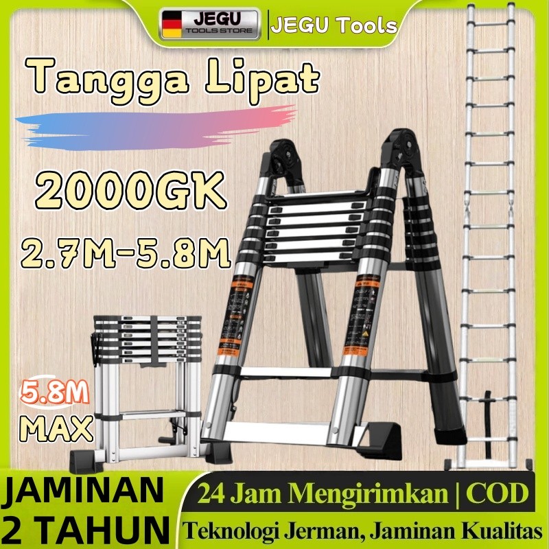 Tangga Teleskopik Aluminium Tangga Tangga Lipat Rumah Tangga 5.8Meter Multifungsi Dengan Teknik Tangga Lipat