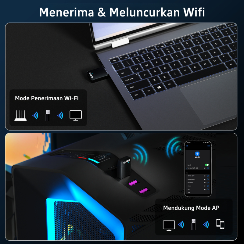 Adaptor WiFi USB Tenda U11 untuk PC WIFI 6 AX900 5G&2.4G Adaptor nirkabel penerima WiFi USB
