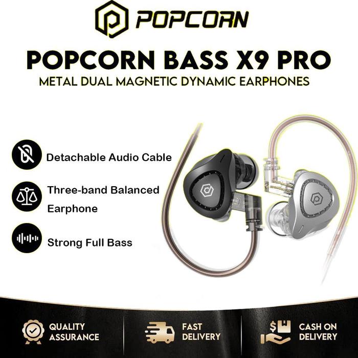 Popcorn Bass X9 Pro Earphone In-Ear Dinamis Logam HIFI DJ dengan Mikrofon Gaming Earphone Tipe C