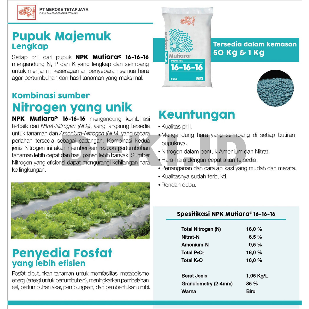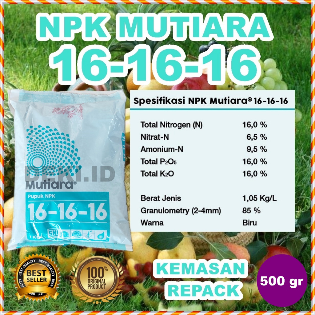 Pupuk NPK Mutiara 16 16 16 Meroke 500 gr Kemasan Repack 161616 Tanaman Bunga Buah Sayur Hias Bonsai