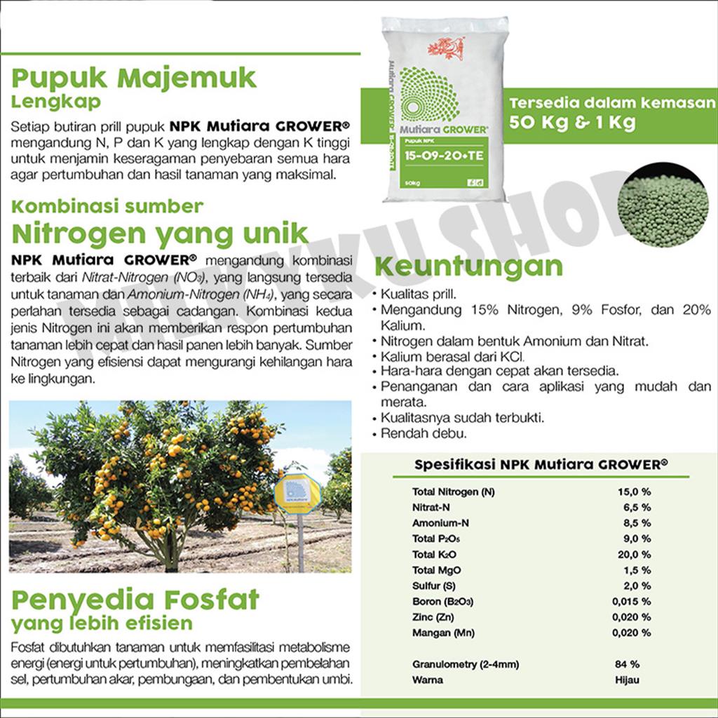 PUPUK NPK GROWER 15-09-20+TE MUTIARA MEROKE KEMASAN PABRIK 1 KG
