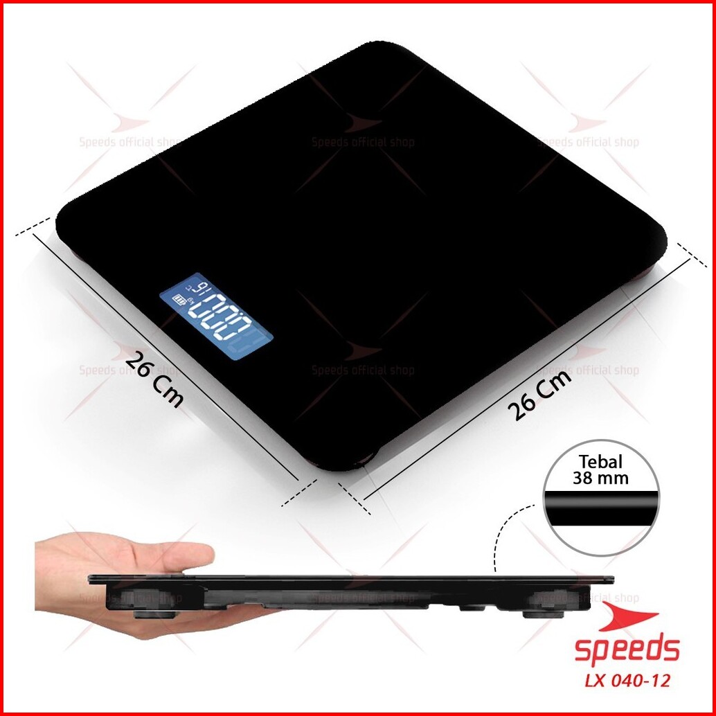 Speeds Timbangan Badan Digital 26x26 Cm Scale Kaca Berat Max 180kg Original Speeds Impor 040-12