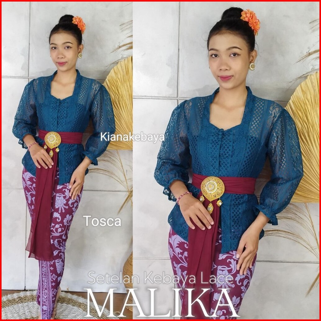 Setelan Kebaya Bali Modern Brokat Malika Bet Pecah Dan Rok Stretch Panjang Batik Kebaya Wisuda Pengantin