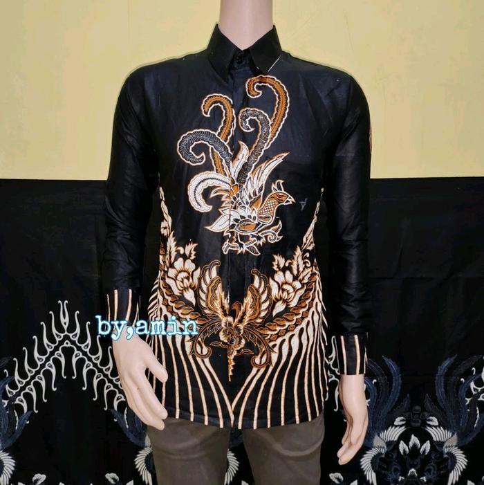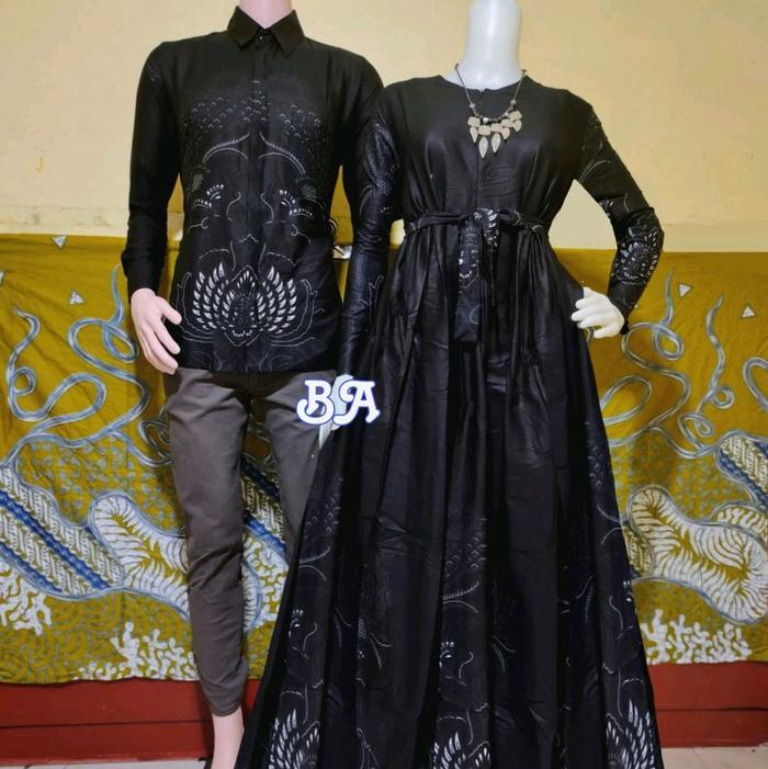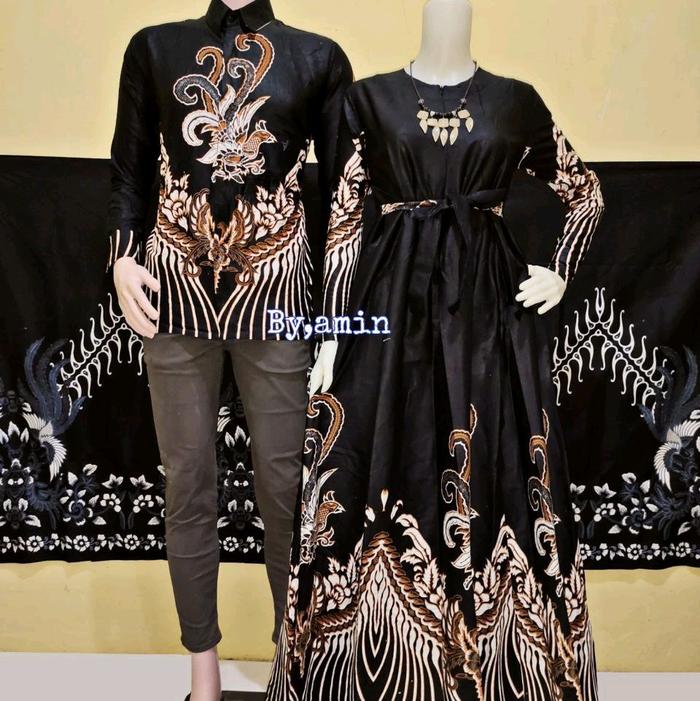 GAMIS BATIK COUPEL BAJU BATIK KAPELAN SUAMI ISTRI - AYAM HITAM, KEMEJA L - GAMIS STANDAR
