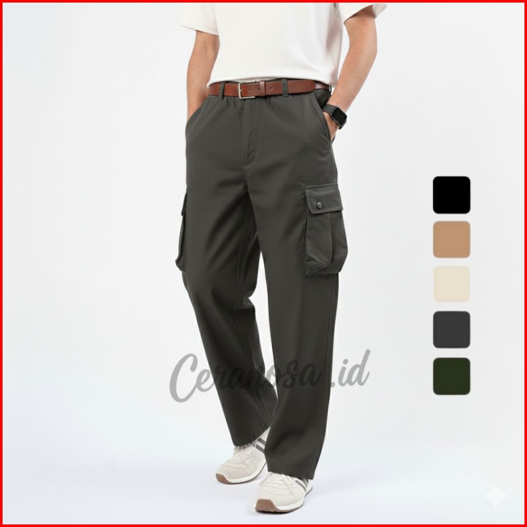 Cargo Gombrong Reguler Loose Fitt Celana Panjang Gombrong Loose Pants Cargo Twill Stretch Melar Tebal Adem