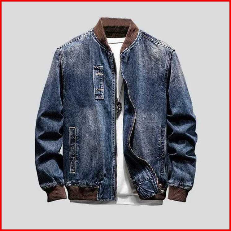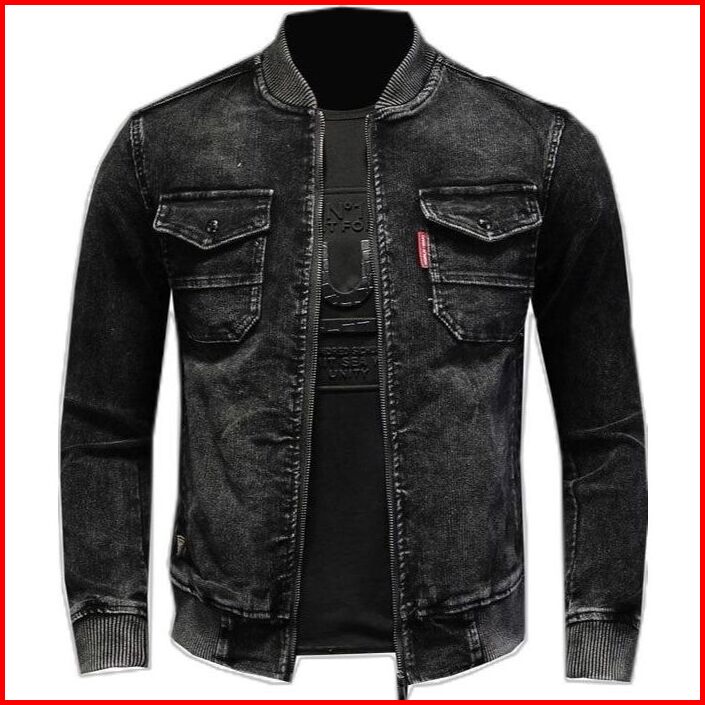 Jaket Boomber Jeans Kerah Rib Karet Biowos Navy Reseleting Polos Kasual Fashion Cowok