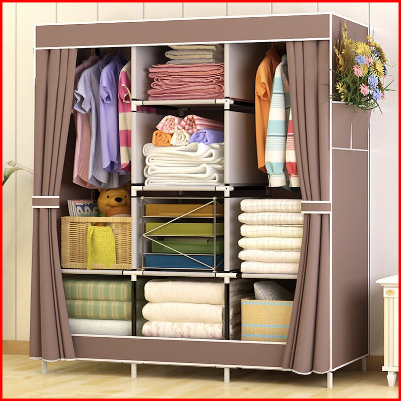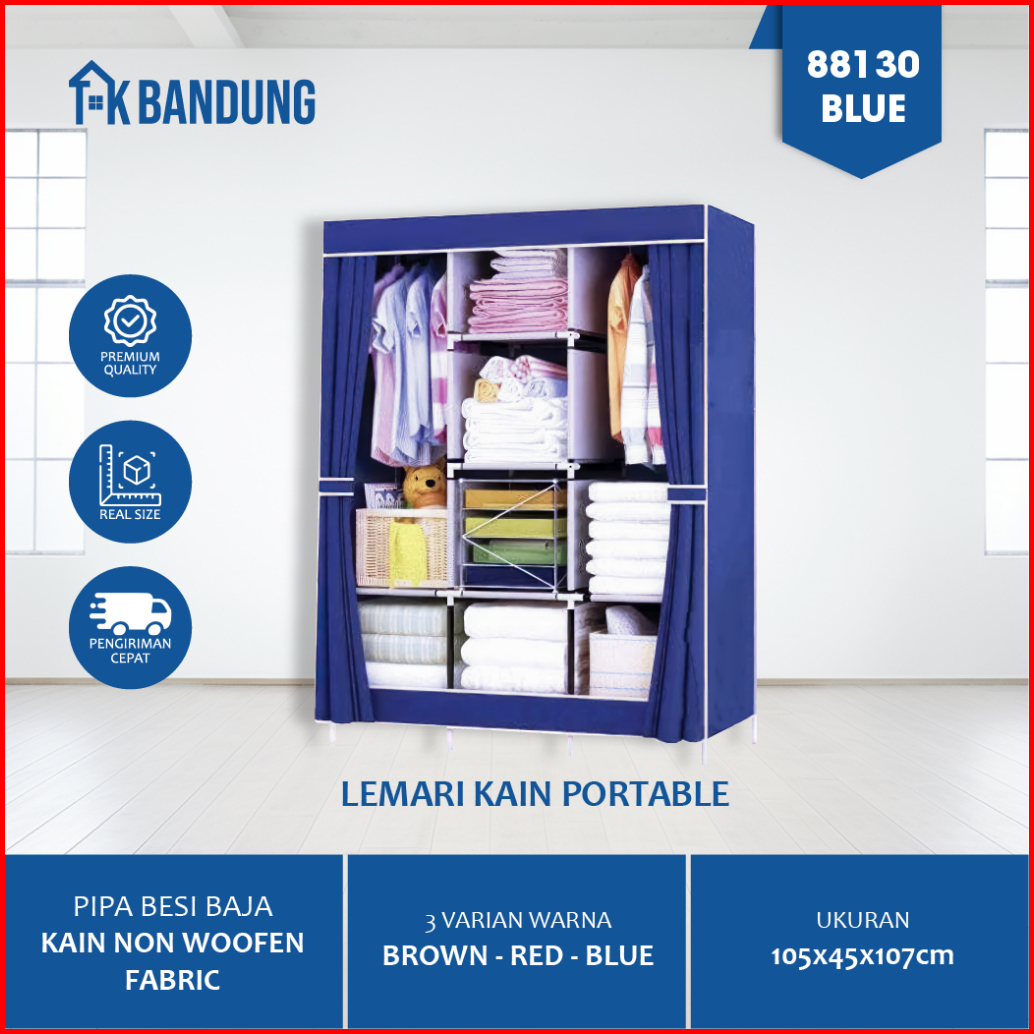 Miliki Segera Wow Lemari Pakaian Kain Portable Import 3 Sisi Praktis Premium Matte Elegant - 88130 Rak Serbaguna