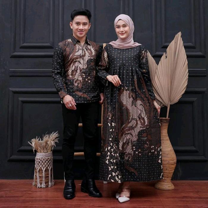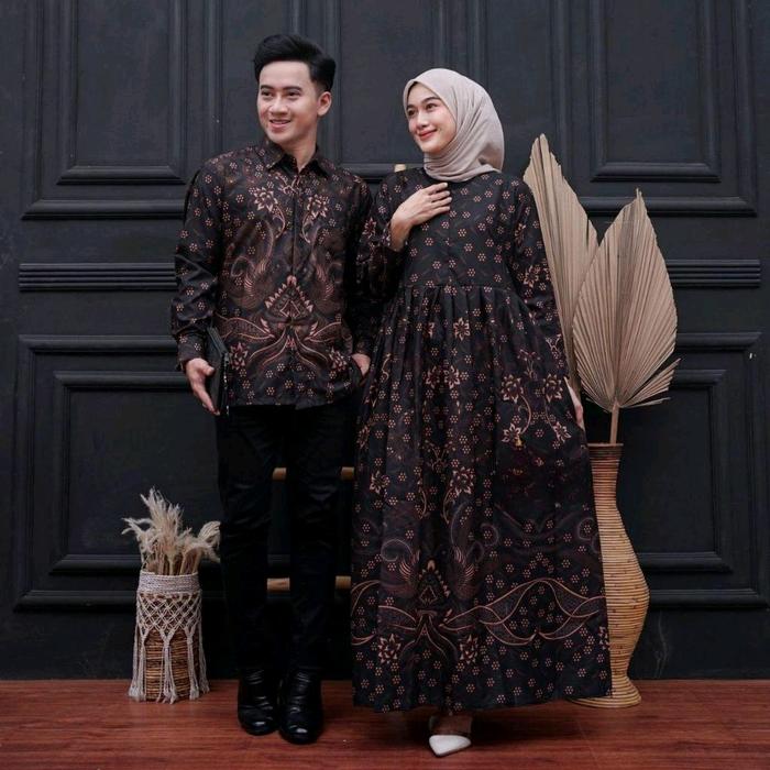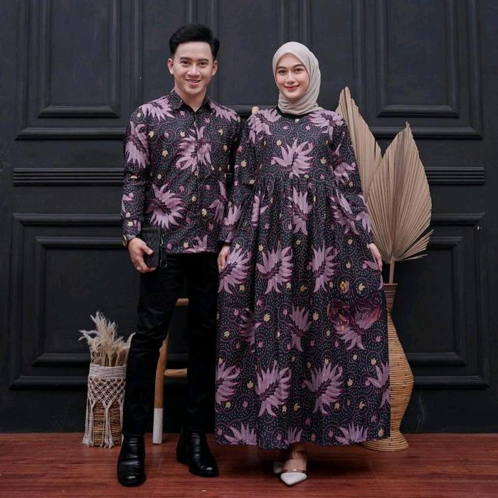 BAJU COUPLE BATIK KEMEJA PRIA LENGAN PANJANG DAN GAMIS WANITA SYARI MUSLIMAH PASANGAN SARIMBIT DRESS KONDANGAN PESTA - SET LEMAH TELES, GAMIS STANDAR/KEMEJA. M