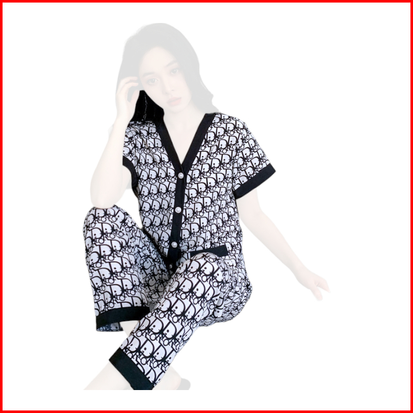 Stelan Piyama Cp Lengan Pendek Kancing Celana Panjang List Hitam Sbcp