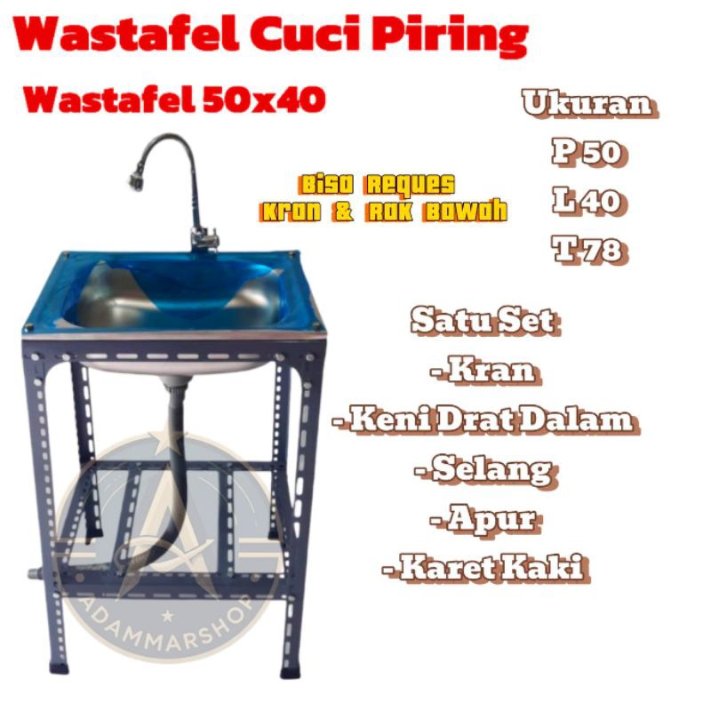 Wastapel Portabel/Bak Cuci Piring Tanpa Sayap Ukuran50X40Cm Rak Penyimpanan