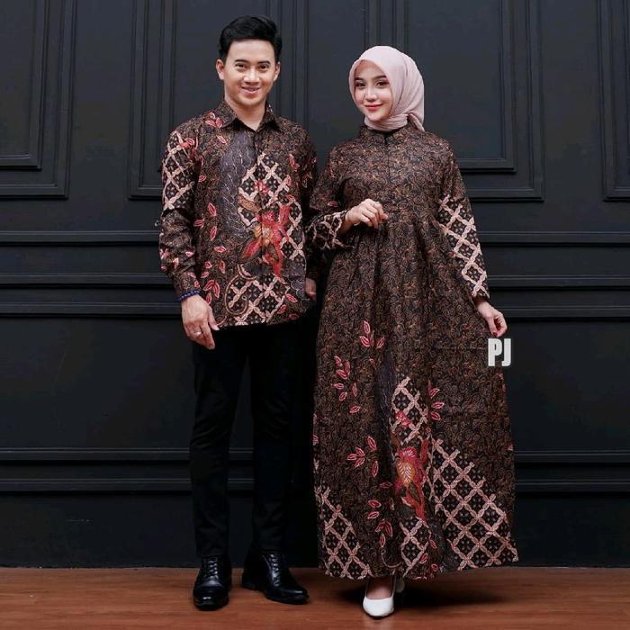 HARGA SEPASANG - BAJU BATIK COUPLE MODERN - SARIMBIT BATIK KONDANGAN KEKINIAN - COUPLE GAMIS BATIK DAN KEMEJA POLYESTER SERAGAM PASANGAN MUSLIM - CP. GK AYAM, PRIA M WANITA L