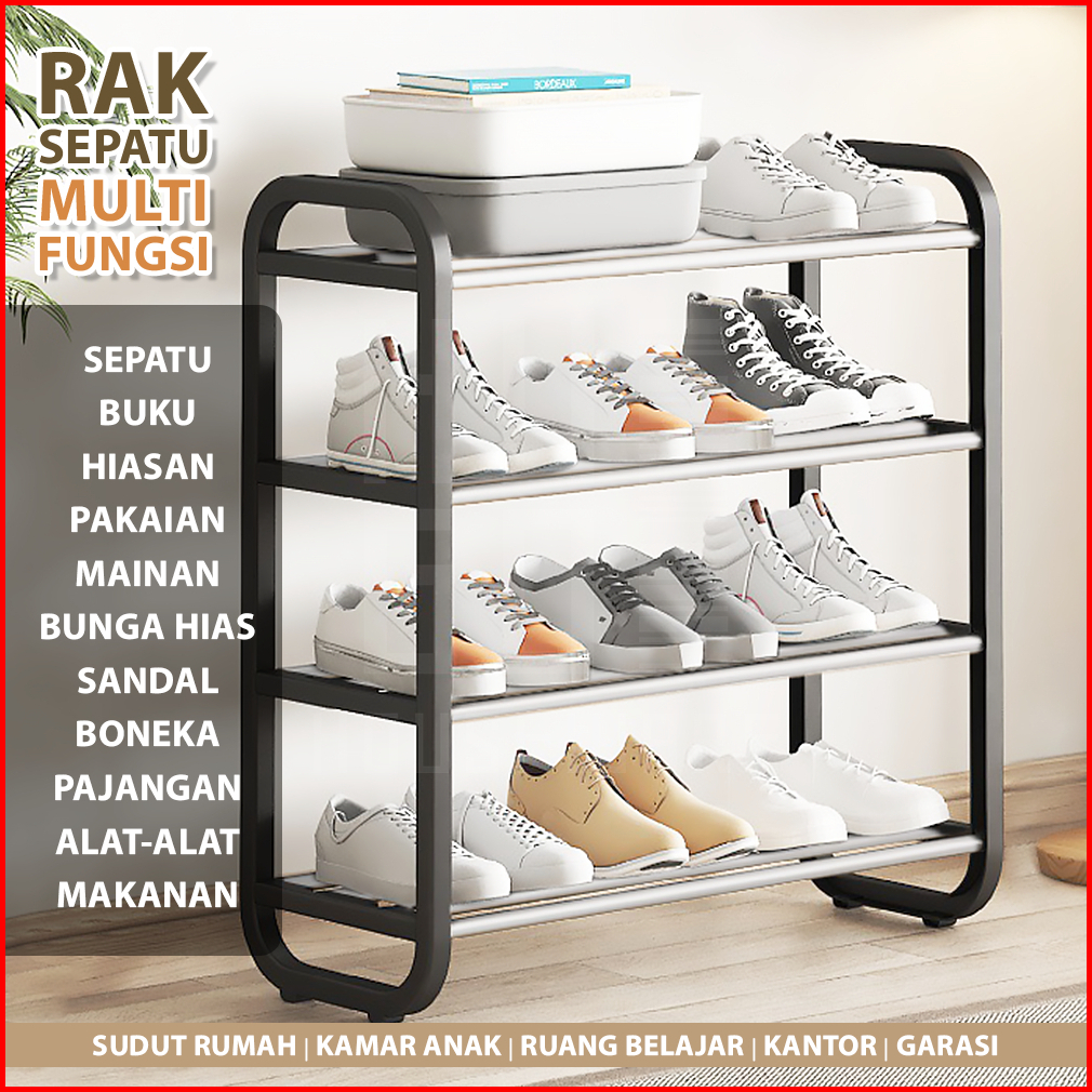 Hugo Rak Sepatu Serbaguna Portable 4 Dan 5 Susun Bahan Kuat Stainless Steel Tempat Sepatu Sandal Minimalis