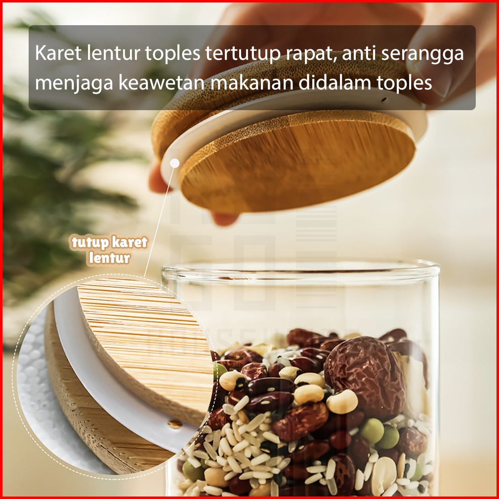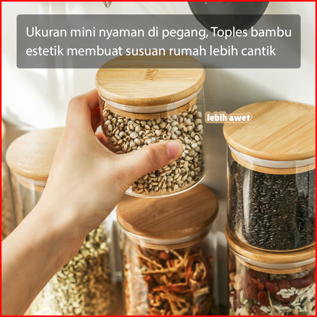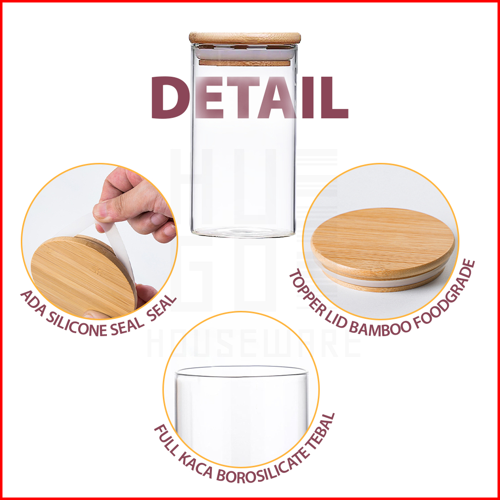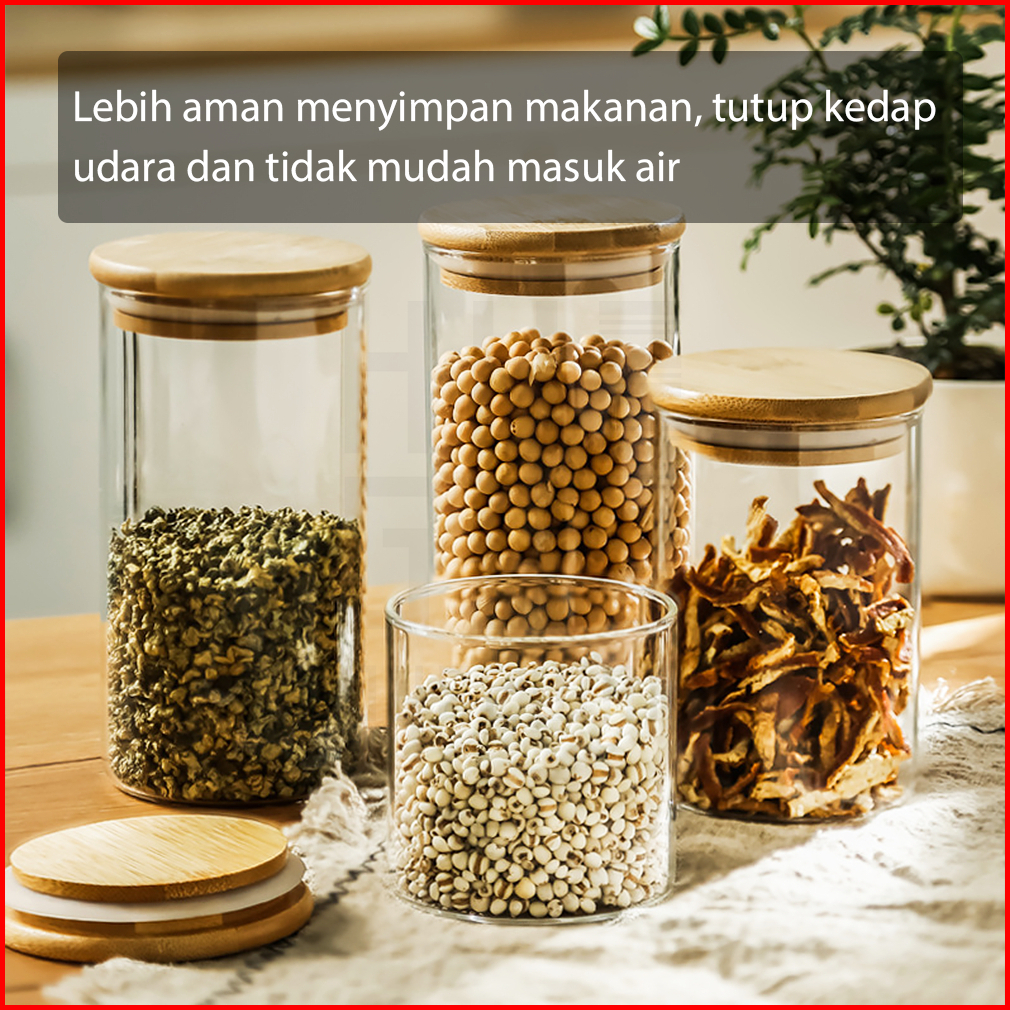 Hugo Toples Lebaran Set 4 Pcs Kado Lebaran Toples Tutup Bambu Toples Kue Kering Snack Penyimpanan Makanan Toples Kaca Ke