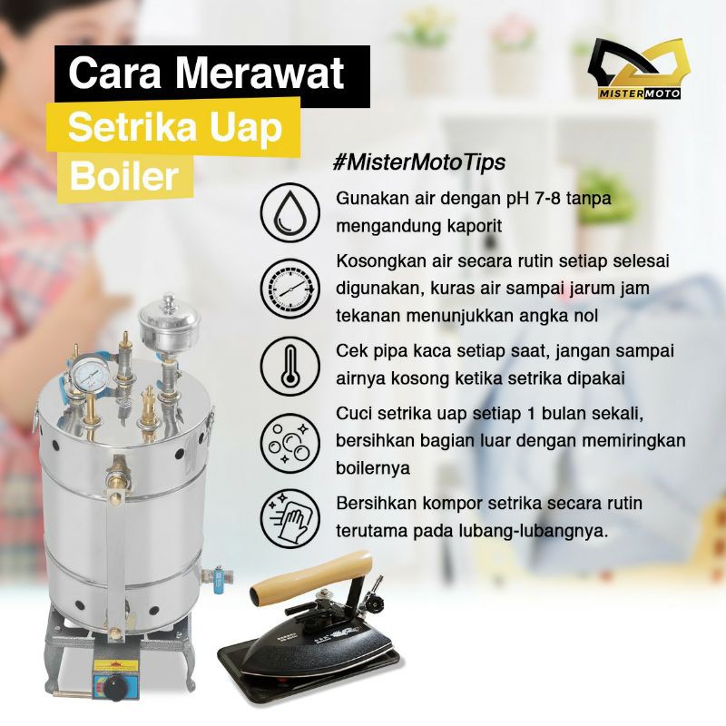 Setrika Uap Boiler Steam Laundry 10 liter Mistermoto 1 Kepala setrika