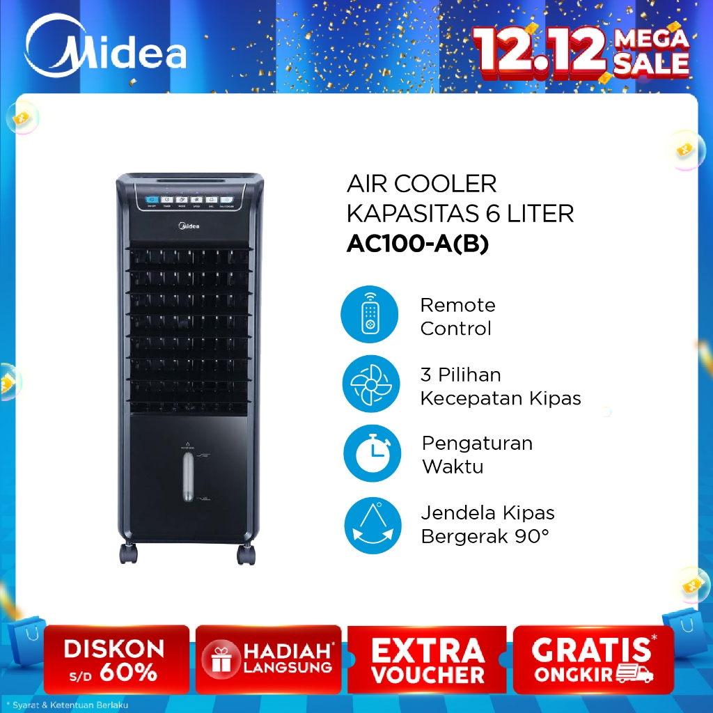 [Mall] AIR COOLER MIDEA 6.0 Liter AC100-A(B) - Remote Control - Timer 7 jam Pendingin Ruangan Terbaik / Ac Portebel