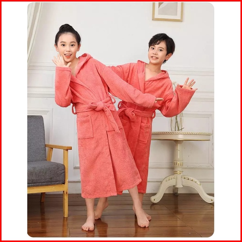 Handuk Kimono Anak Tebal Ada Kupluknya Usia 2-13 Tahun Gratis Custom Bordir Nama Anak