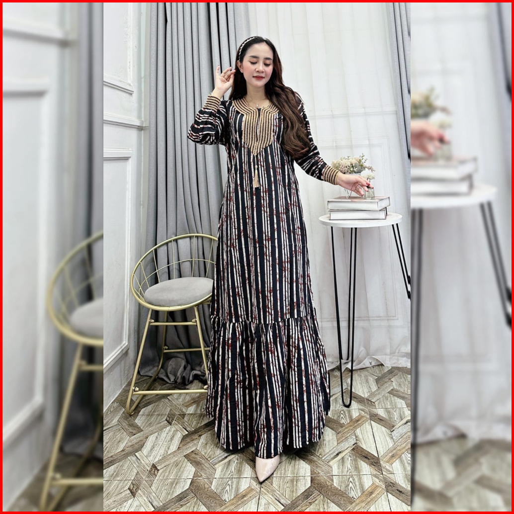 Gamis Wanita Sultan Premium Mewah Terbaru 2025 Gamis Sultan Salur Garis Rempel Renda Handmade Rayon Premium Tebal Busui