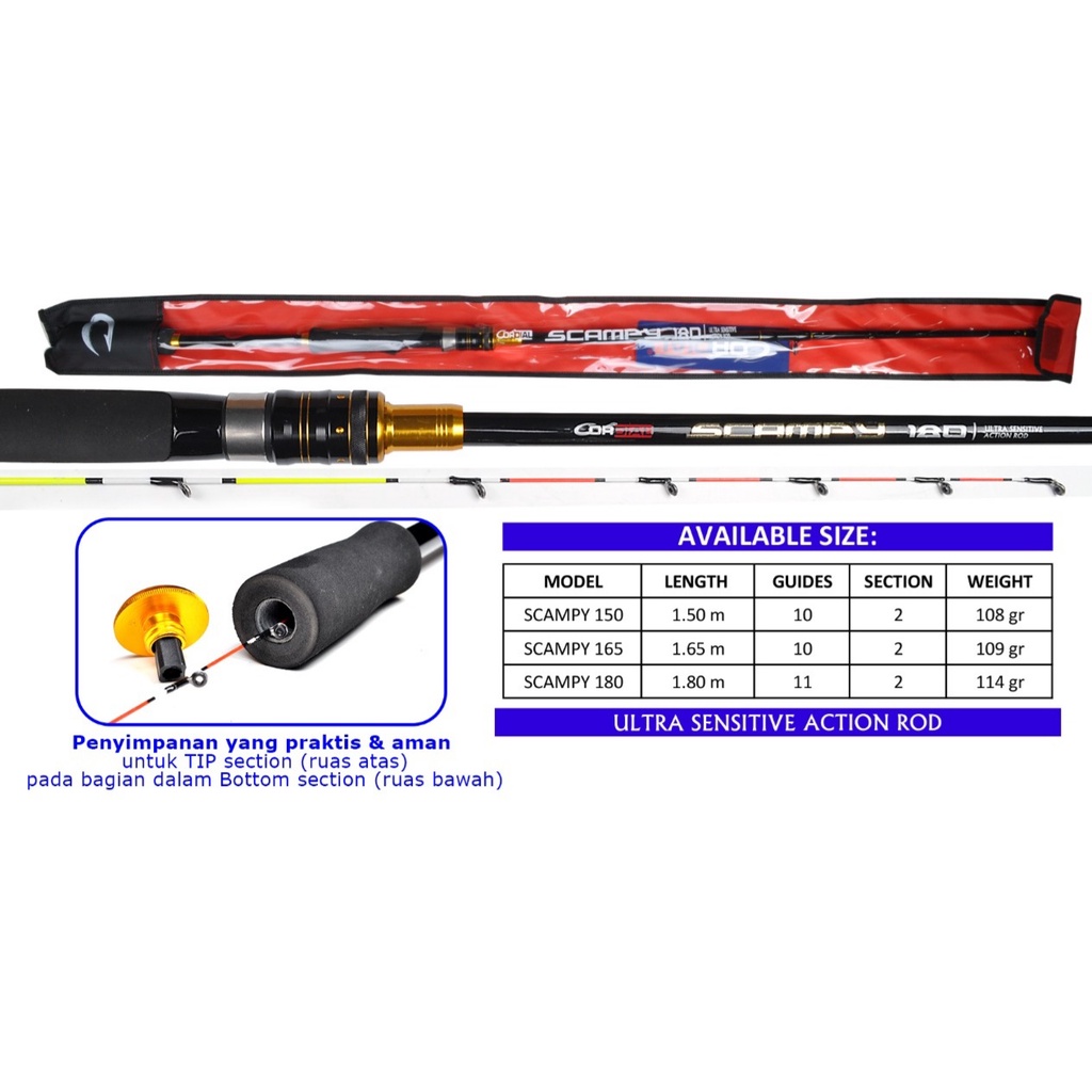 Joran Udang Cordial Scampy | 150 | 165 | 180 | Iso Rod | Alat Pancing un99ulan
