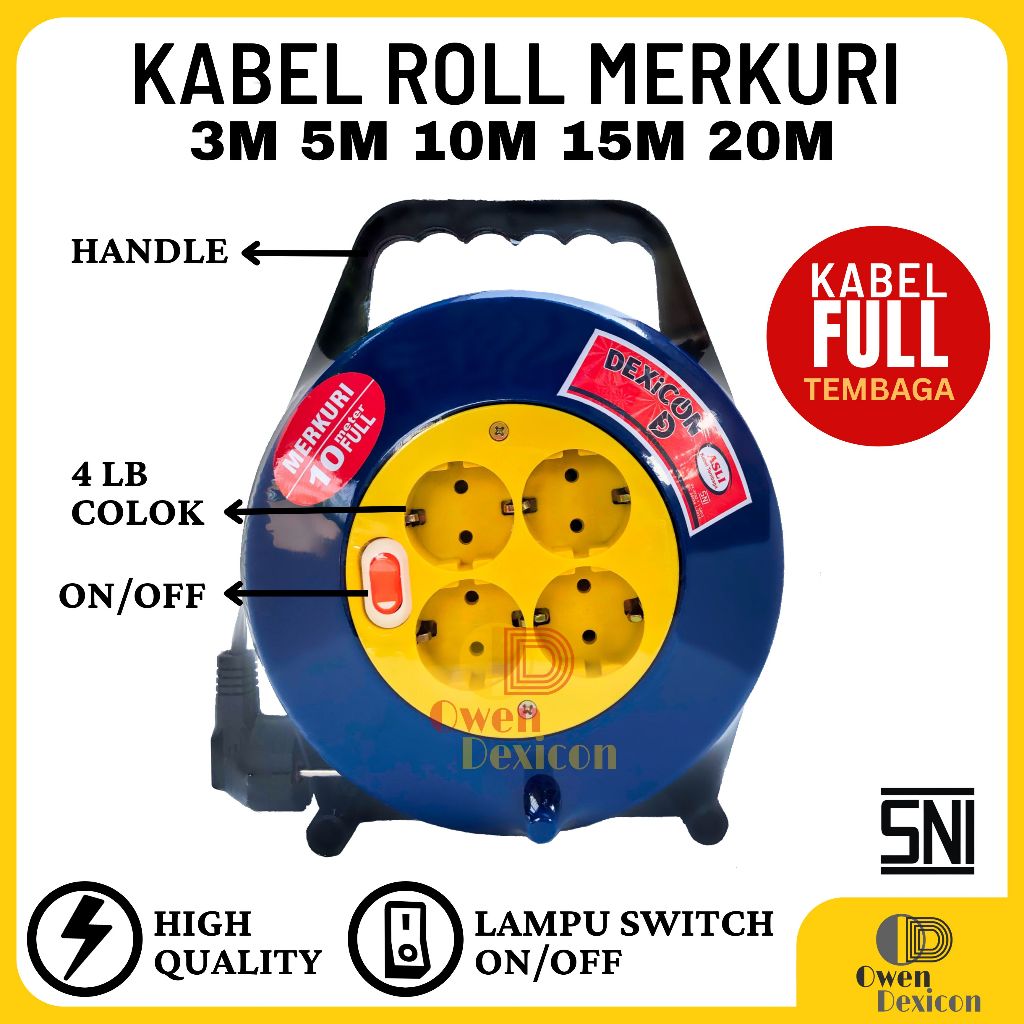 Kabel Roll 3/5/10/15/20 Meter Box Kabel SNI DEXICON Kabel Gulungan switch saklar on/off Kabel Olor