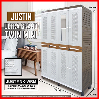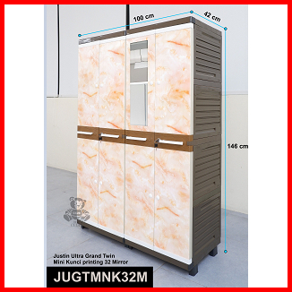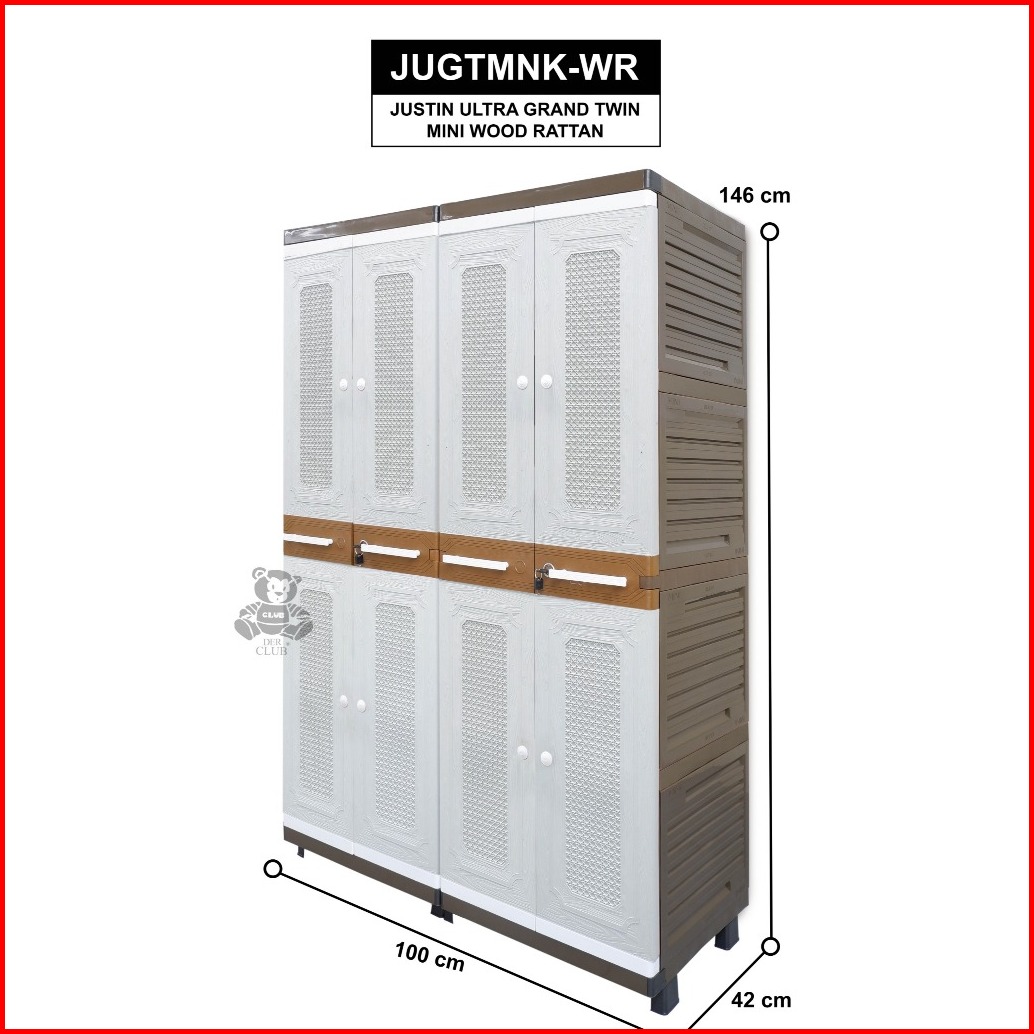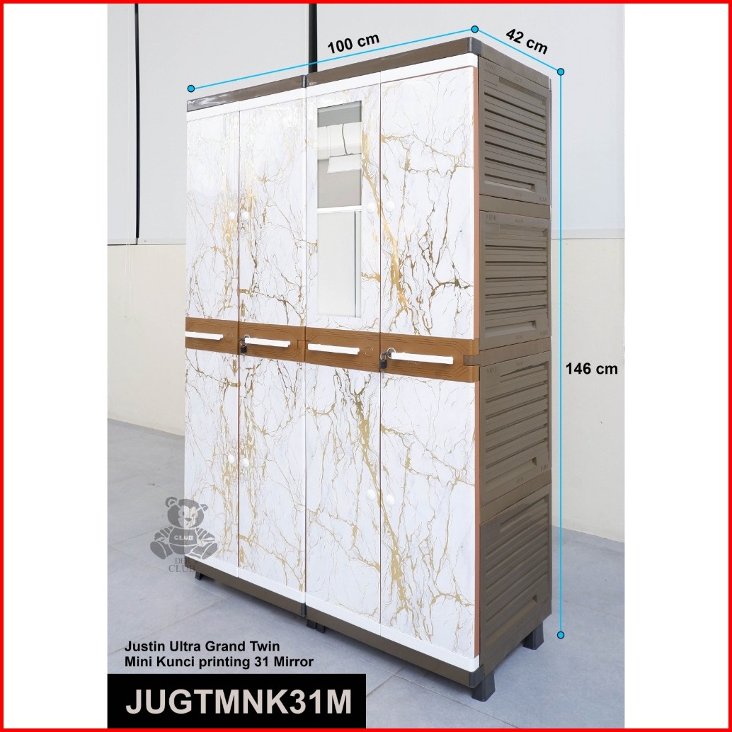 Jumbo Besar Lemari Plastik Baju Club Justin Ultra Grand Mini Twin Full Rak Kunci Cermin Kaca 4 Pintu