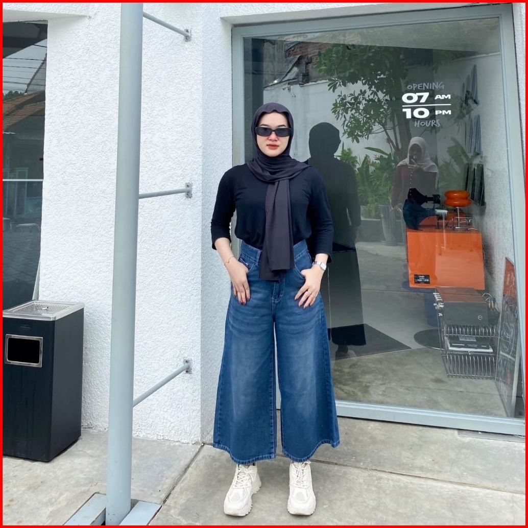 Celana Cullote Jeans Wanita 7 8 Retro Jeans 1950