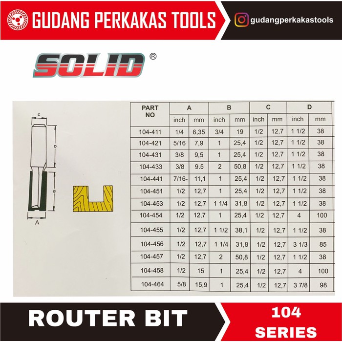 Sbo Mata Router | Mata Profil 104-433 | Straight Bit 1/2X3/8X2 Solid Buruan