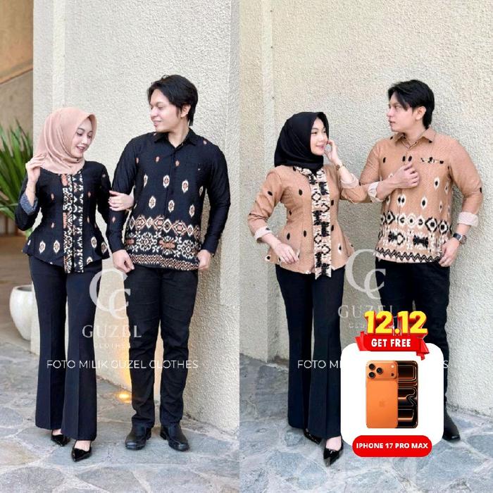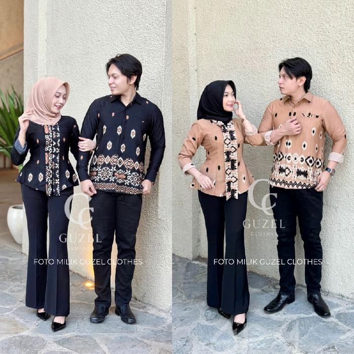 COUPLE AZARA ATASAN BATIK MODERN BY GUZEL CLOTHES MOTIF ETNIK TENUN SARIMBIT PREMIUM KONDANGAN FORMAL - ATASAN CEWEK HITAM, S