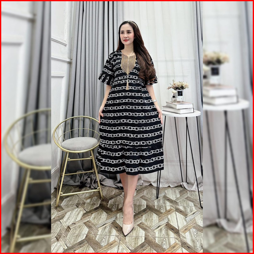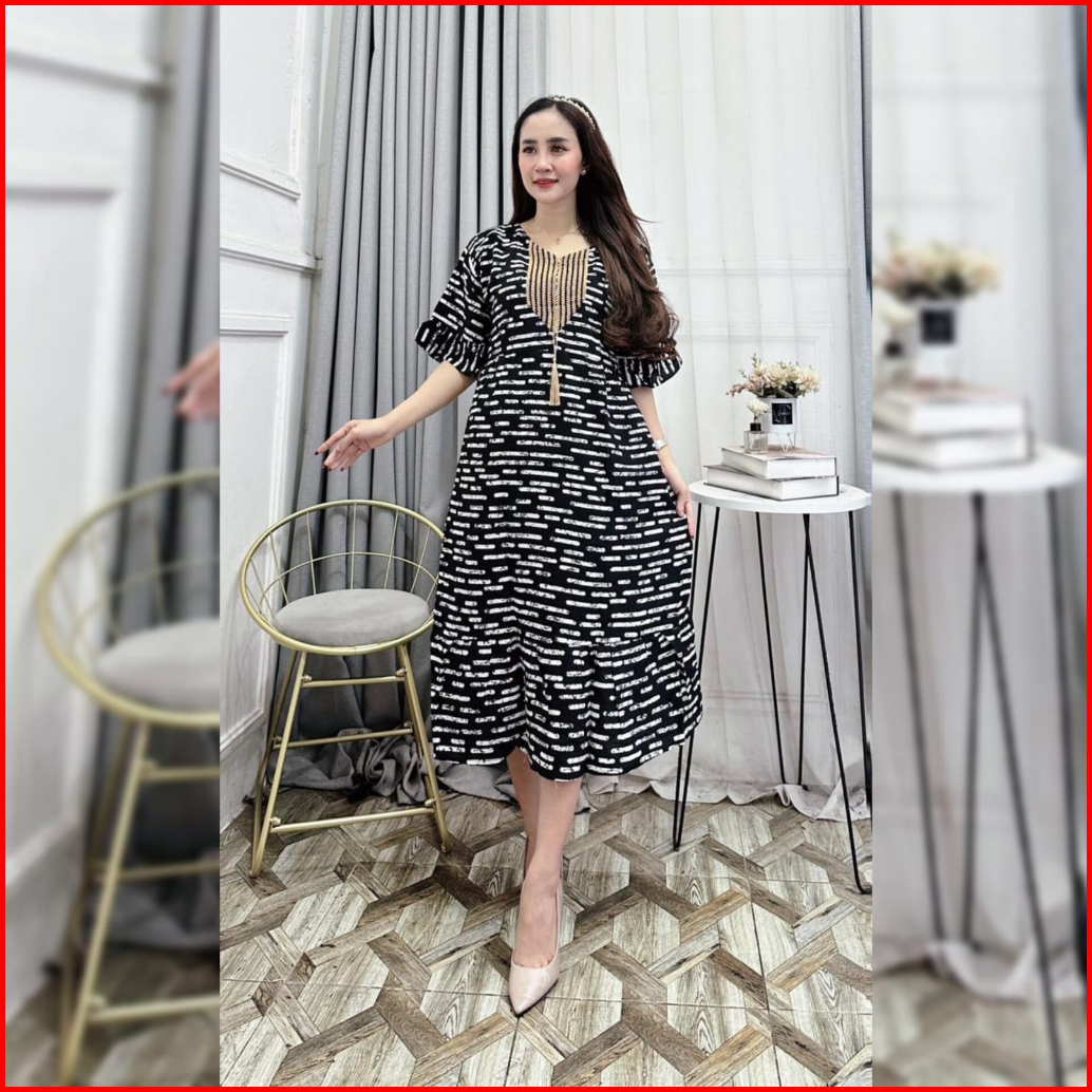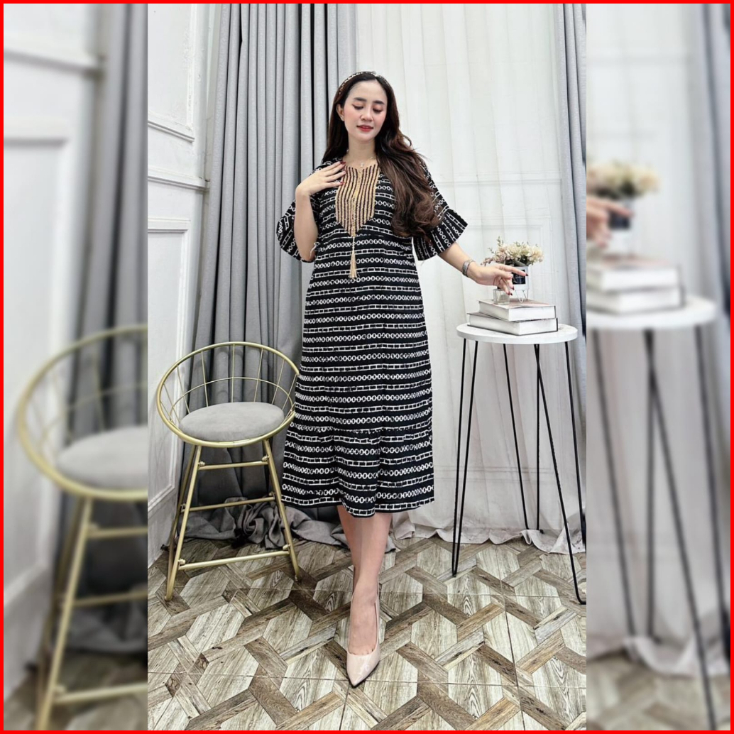 Daster Wanita Sultan Arab Terbaru 2024 Vol.3 Renda Warna Hitam Motif Salur Rempel Wanita Handmade Rayon Busui Resleting