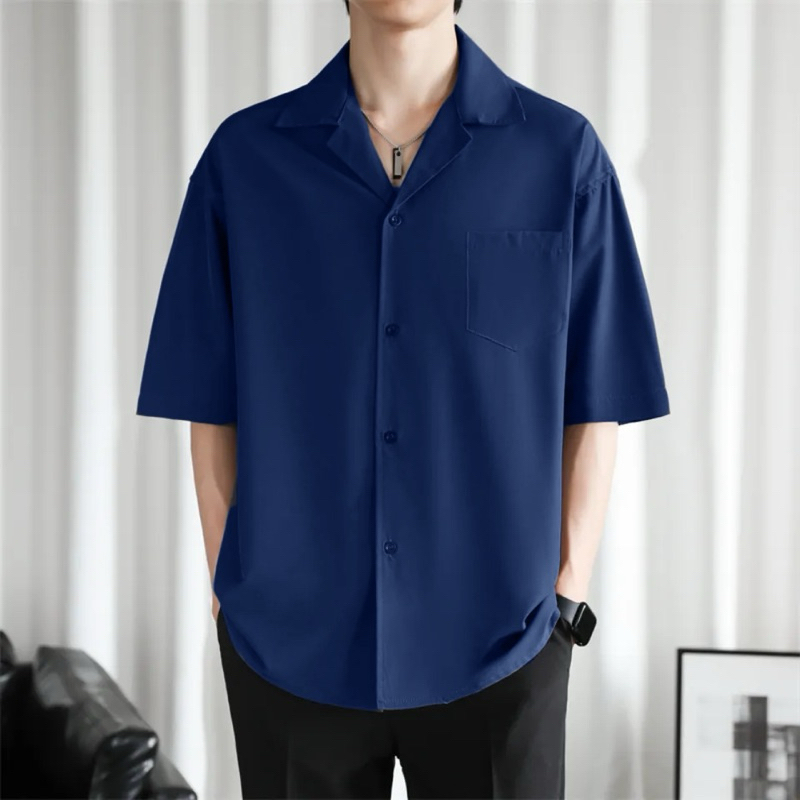 Baju Kemeja Hawai Polos Pria Wanita Hem Pantai Kerah Piayama fit Korean Style Kekinian