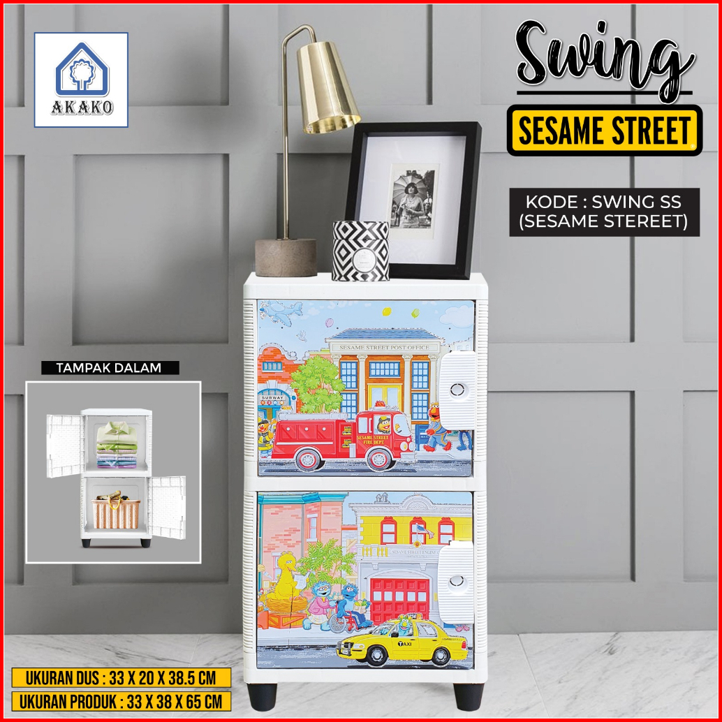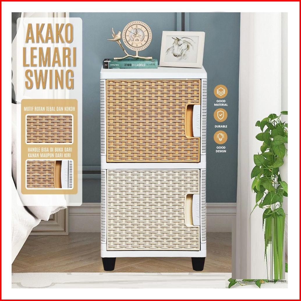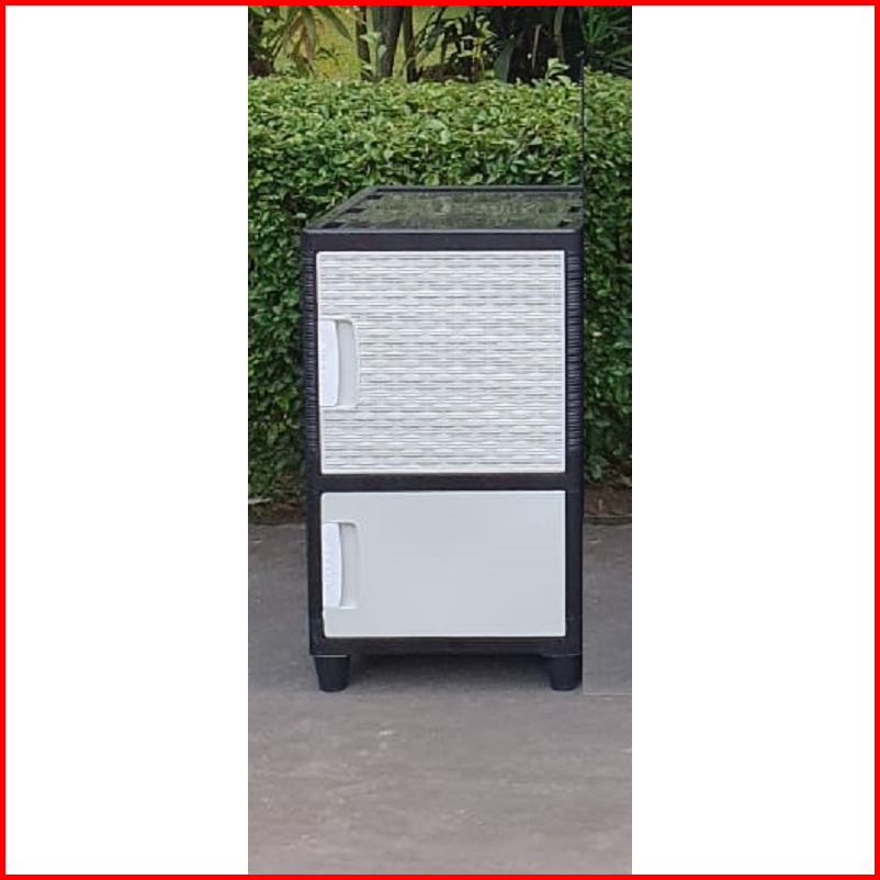 Panda Lemari Baju Pakaian Plastik Akako 2 Pintu Laci Rotan Minimalis Panda Hitam Putih Full Kunci