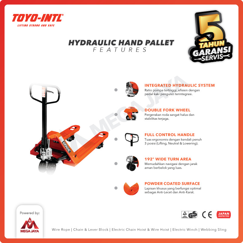 Toyo Hydraulic Hand Pallet Truck Trolley 3 Ton / 3000 Kg