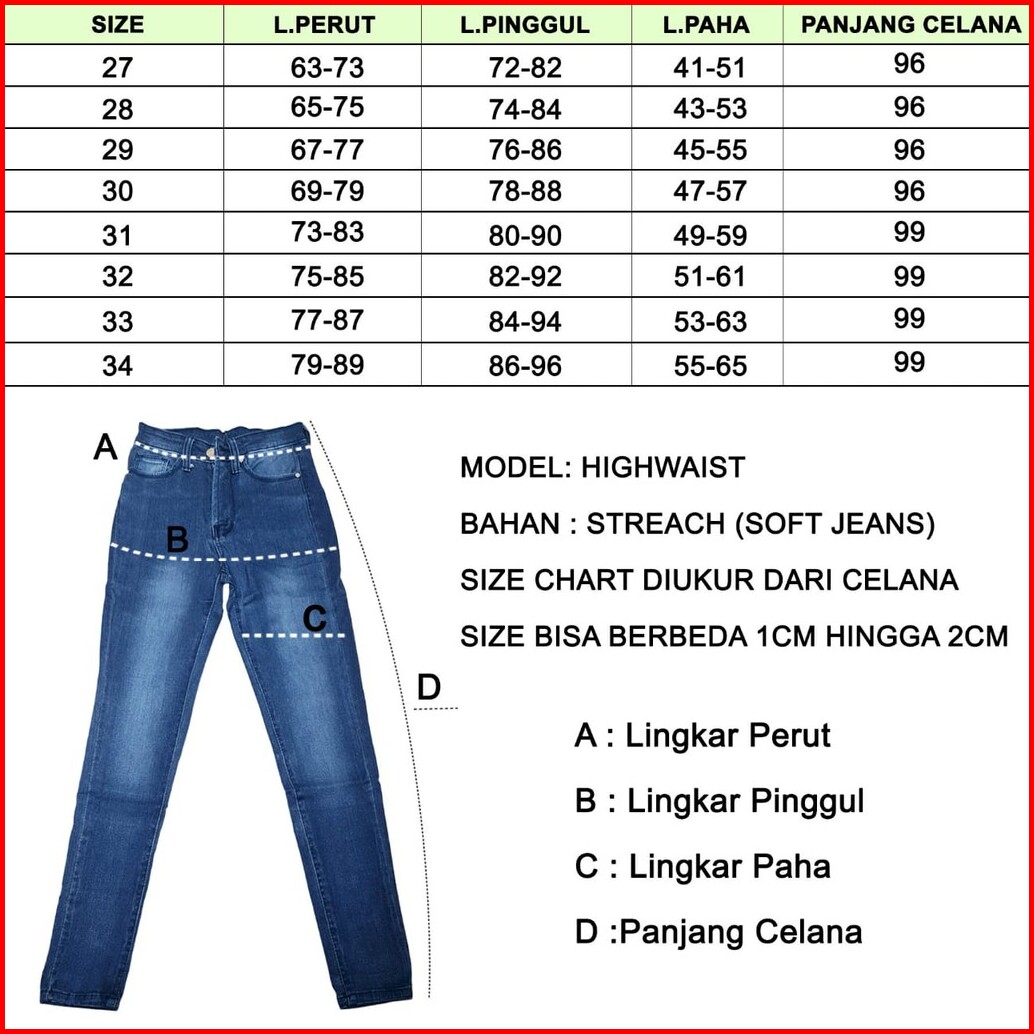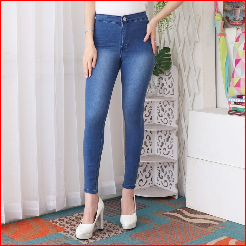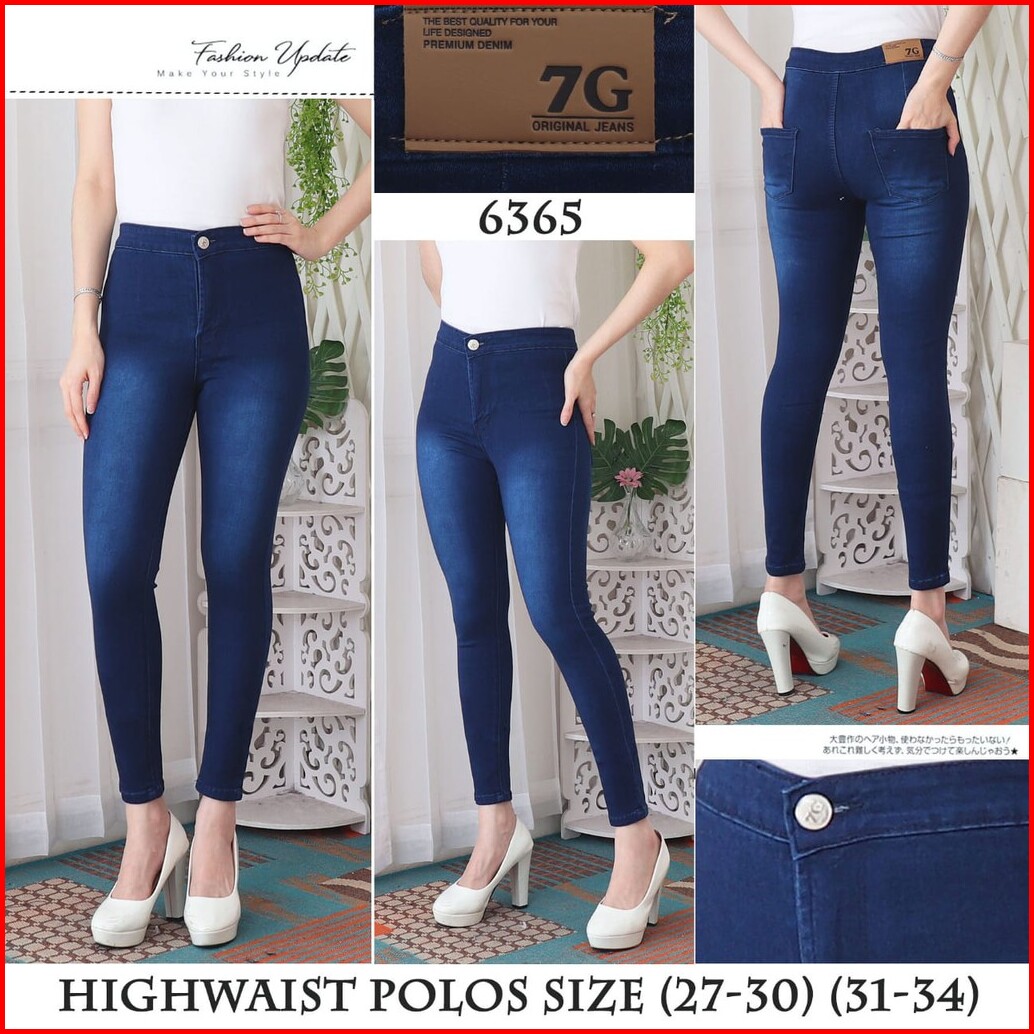 7c-g Celana Jeans Premium Highwaist Polos Pinggang Tinggi Jeans Streach 4 Colour 27 - 34