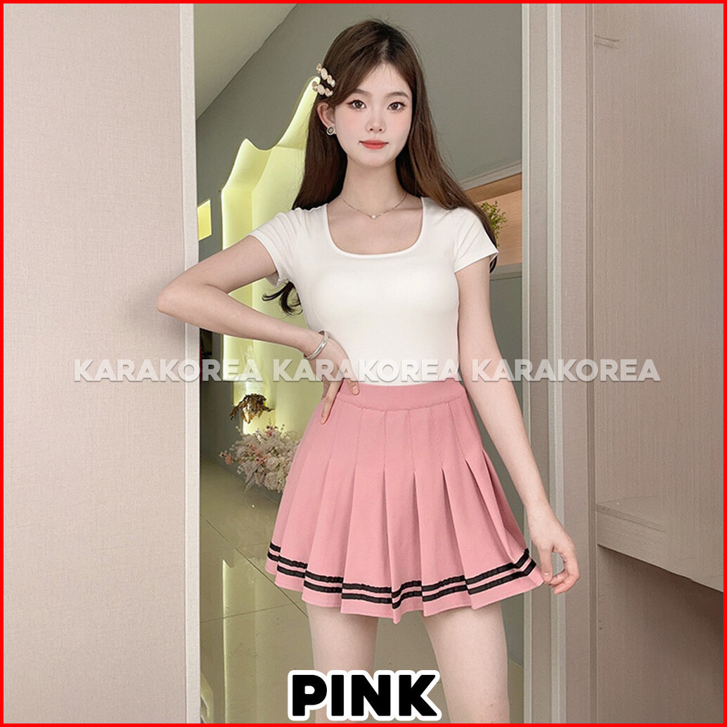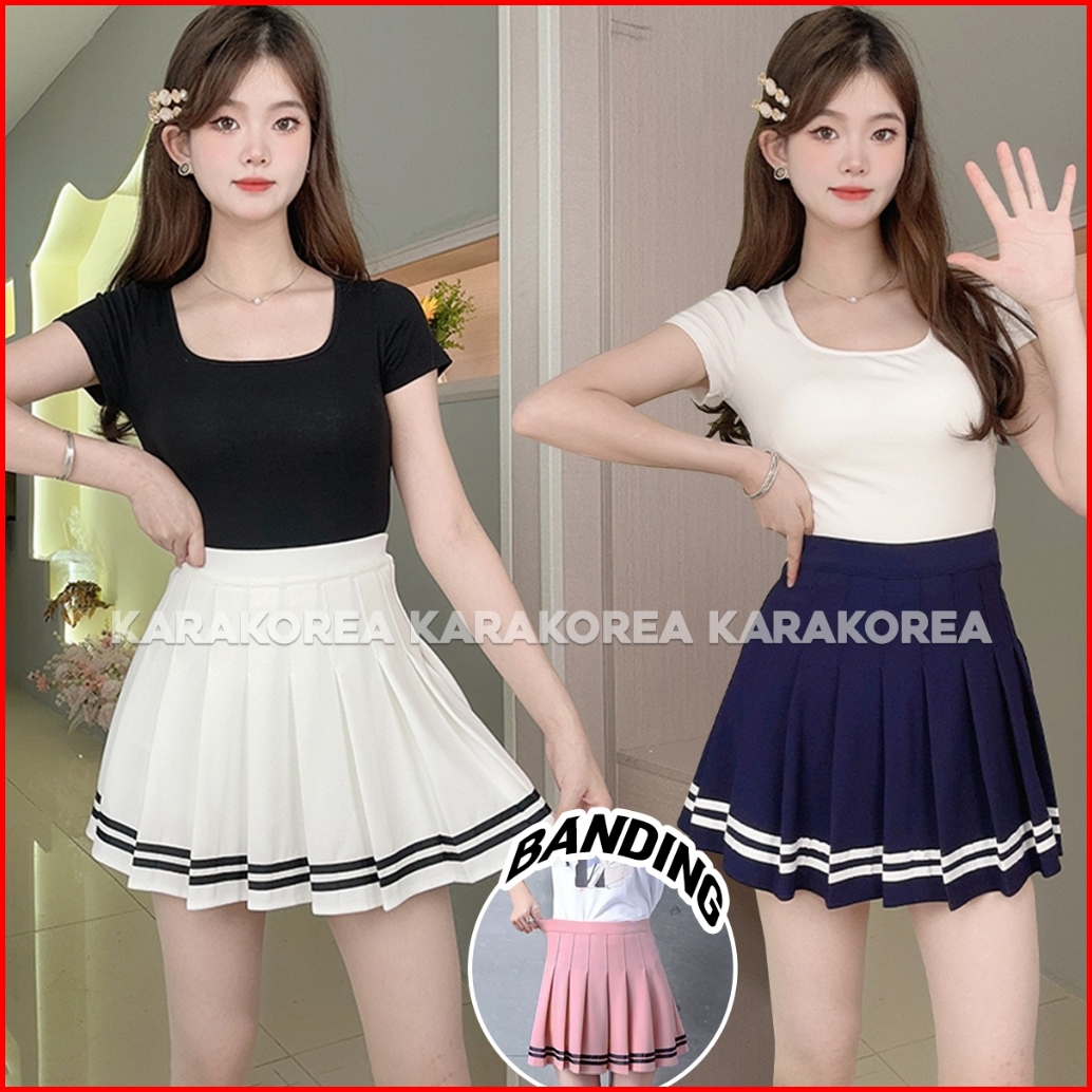 Karakorea 860 Banding Line Tennis Skirt Korean Pleated Skirt Rok Mini With Inner Rok Tennis Rok Golf Wanita Rok Tenis Ro