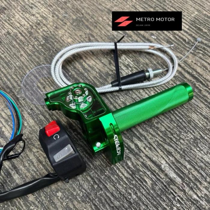 GAS SPONTAN ACERBIS FULL CNC 1 KABEL PLUS SAKLAR KANAN MODEL KTC UNIVERSAL UNTUK SEMUA MOTOR - ACERBIS V2 GREEN , TANPA