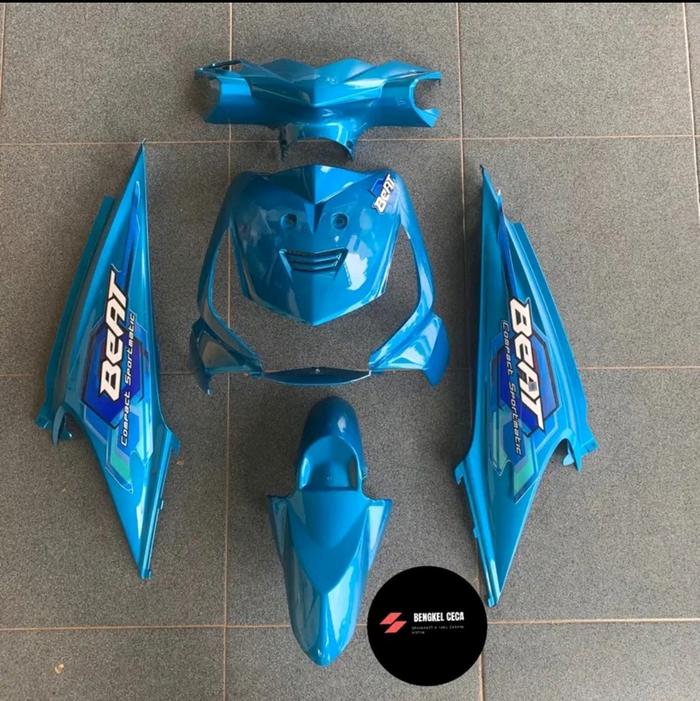COVER FULL HALUS HONDA BEAT KARBU BIRU MUDA MOTORCYCLE AKSESORIS - PLUS STICKER, 2008-2009