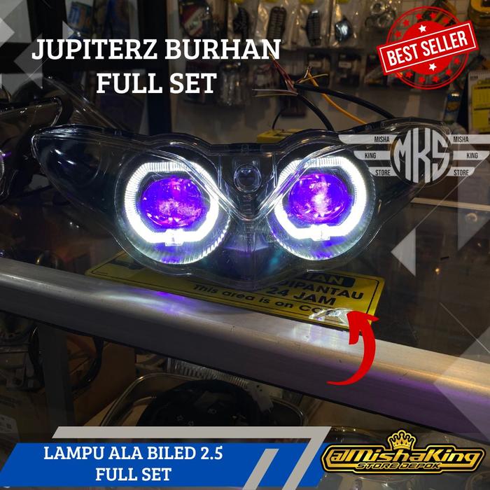 LAMPU BILED JUPITER Z BURHAN 2.5 INCH FUL SET REFLEKTOR DEVIL MERAH - PUTIH MERAH