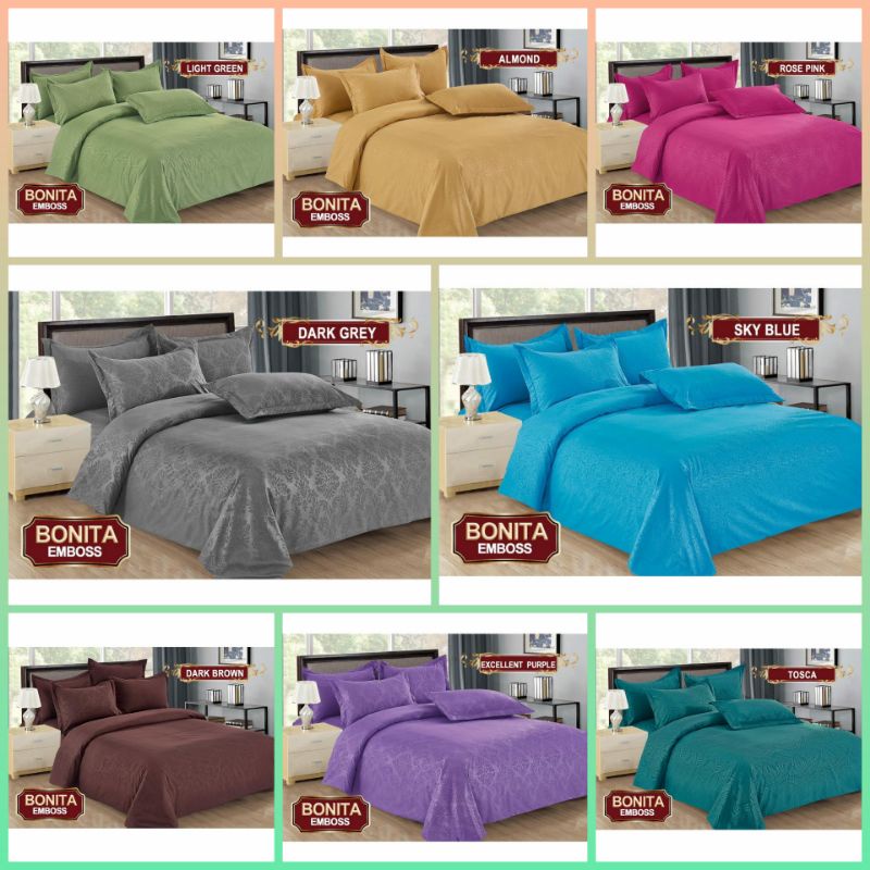 Bedcover Set Bonita Polos Emboss UK 180x200 / Satu Set Bed Cover Bonita Polos Terlaris