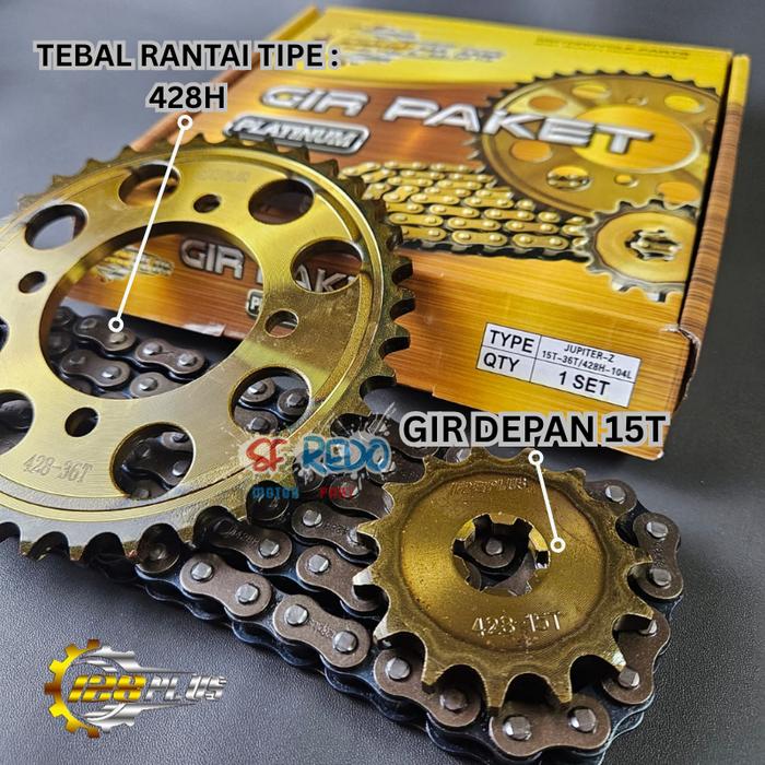 GEAR GIR SET GIR PAKET JUPITER Z BURHAN VEGA R NEW FIZR CRYPTON 15T 36T 428H 104L 128PLUS