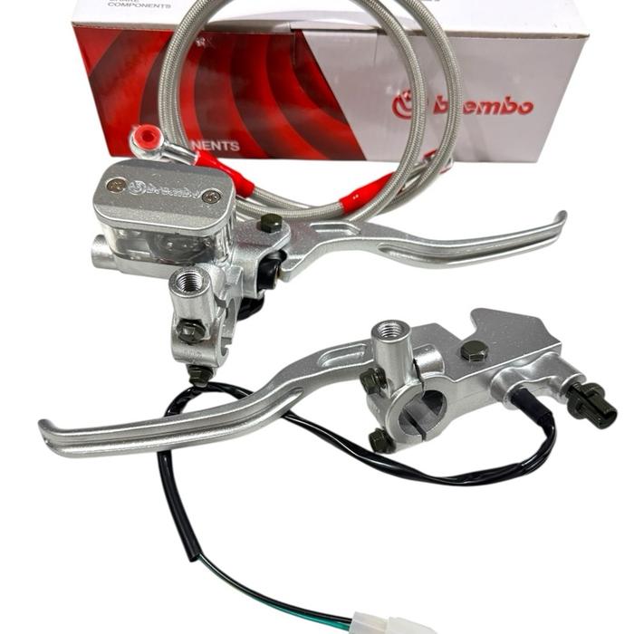 PAKETAN HEMAT MASTER REM TABUNG OVAL DAN KOTAK SILVER KACA PUTIH+SELANG REM 90CM ORIGINAL FULL CNC ANTI KARAT UNIVERSAL