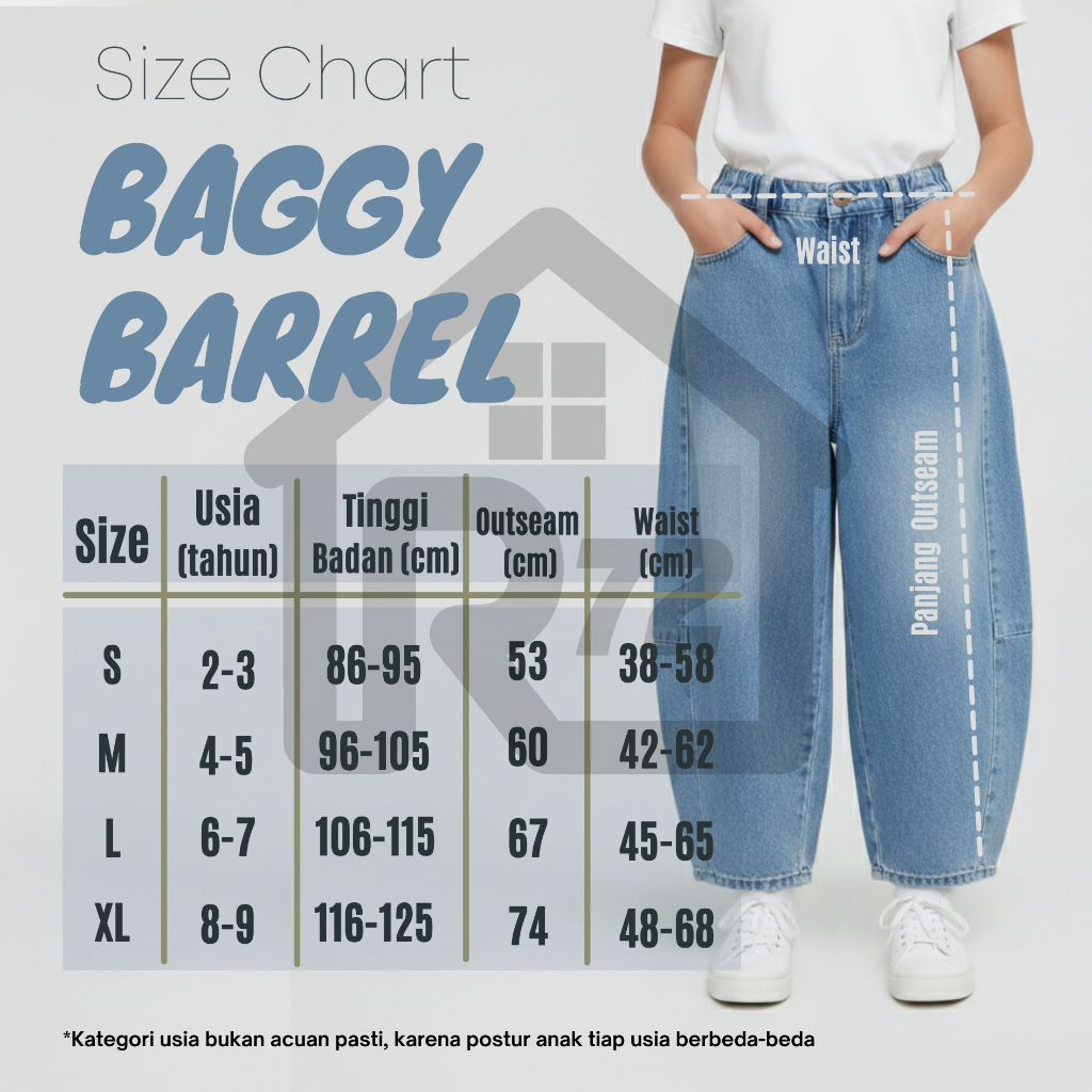 R72 Baggy Barrel Jeans - Celana Anak Unisex Balon Skena Usia 2 - 9 Tahun Soft Jeans Fashion Kids
