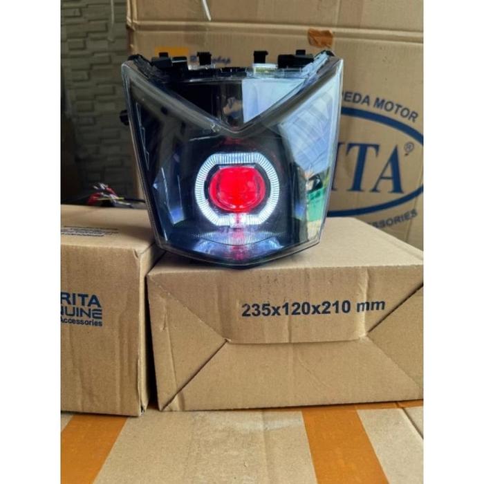 FULLSET LAMPU DEPAN REFLEKTOR BEAT FI BILED ALA ALA 2,5 INCI SUPER TERANG BEAT TAHUN 2013 - 2015 - PUTIH BIRU, BEAT FI 2