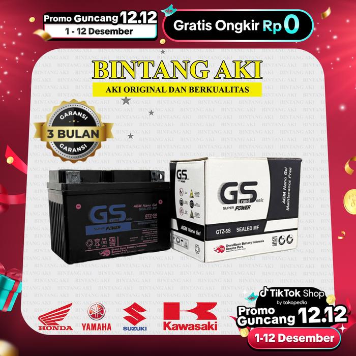 GTZ5S MF 12V 5AH AKI MOTOR HONDA BEAT VARIO 110 SUPRA X 125 SCOOPY SPACY BLADE REVO NEW MEGA PRO - AKSESORIS, KENDARAAN,