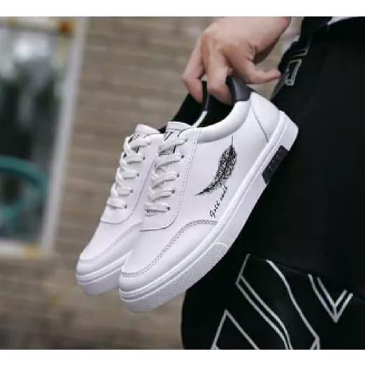 SEPATU SNEAKERS SPORT SS SENJI DAUN PRIA - WANITA TRNDY SEPATU PRIA WANITA SNEAKER CASUAL SENJI BULU MURAH TERBARU - PUTIH LIS BELU SS, 43