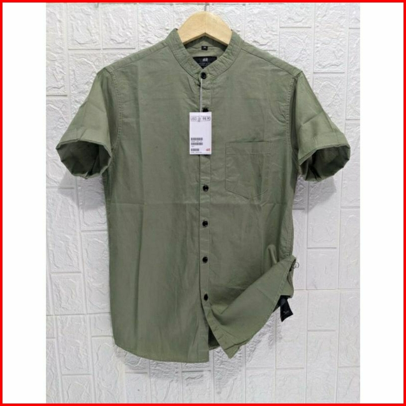 Kemeja Lengan Pendek Shanghai Hm Premium Kemeja Pendek Slimfit Soft Twill Katun Soft Green