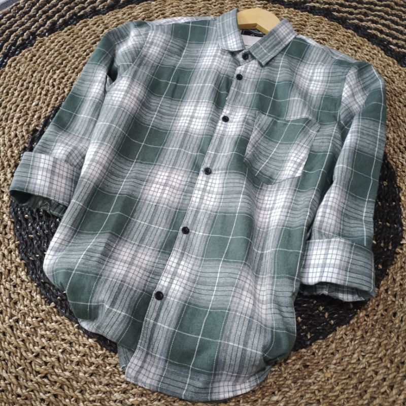 kemeja flanel pria coklat terlaris kualitas super Indonesia