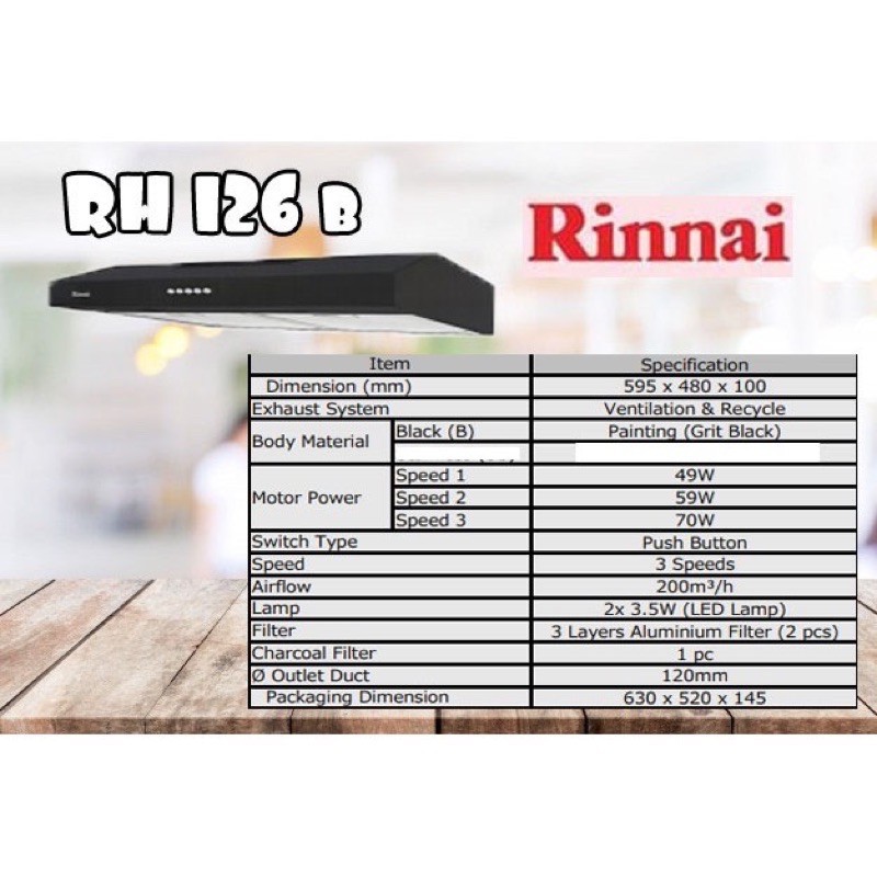 Penghisap Asap Dapur Cooker Hood RINNAI RH-126B rinnai 126b FREE BUBLE WRAB +FRAGILE