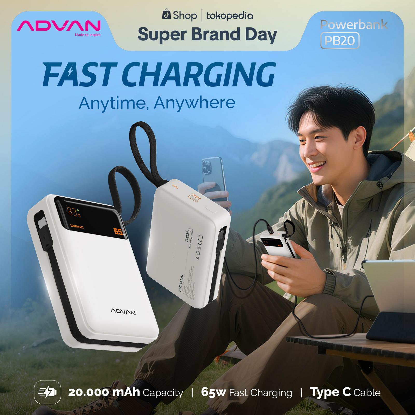 ADVAN Powerbank PB20 20000 mAh Fast Charging 65W Type-C Slim & Compact Design