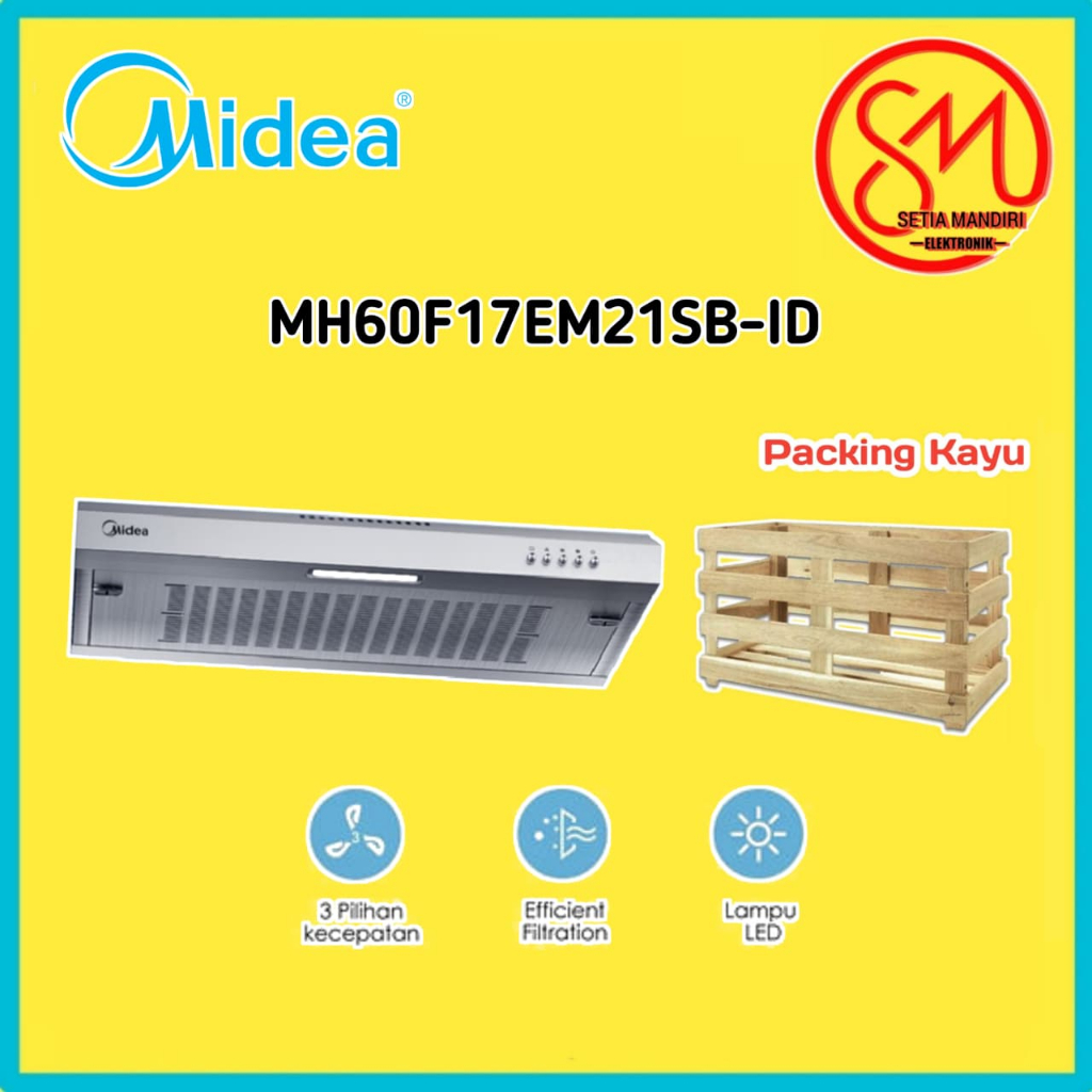 Midea Cooker Hood Slim 60cm Hitam&Stainless - MH60F17EM21BB-ID / MH60F17EM21SB-ID | Filter Aluminium