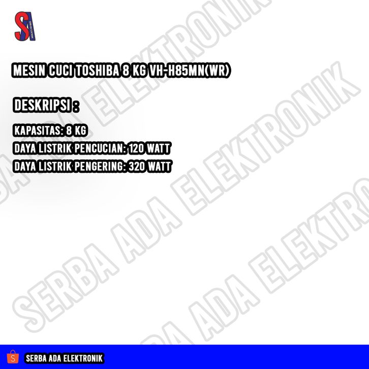 Mesin Cuci Toshiba 2 Tabung 8 Kg VH-H85MNWR